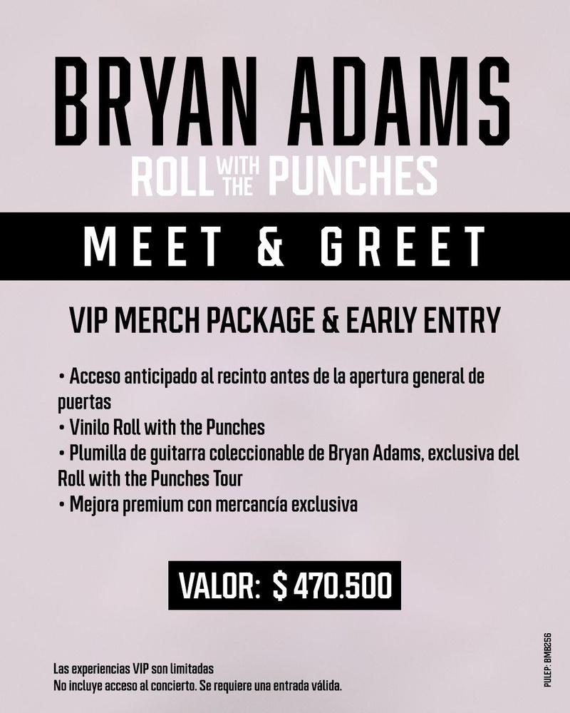 Bryan Adams ha estado de gira por todo el mundo durante más de cuatro décadas, logrando éxitos número uno en más de 40 países. A lo largo de su carrera ha recibido numerosos reconocimientos, entre ellos un premio Grammy, múltiples American Music Awards y tres nominaciones a los Premios Óscar, además de cinco nominaciones a los Globos de Oro. También ha sido distinguido como Companion of the Order of Canada (Compañero de la Orden de Canadá), uno de los honores civiles más altos del país.Además de sus 16 álbumes de estudio, Adams ha realizado contribuciones destacadas para el cine, incluyendo canciones para las películas Spirit: Stallion of the Cimarron y Pretty Woman: The Musical.En 2024, Adams se convirtió en artista independiente y lanzó su propio sello discográfico, BadRecords. Desde entonces, ha publicado dos cajas recopilatorias de tres álbumes cada una, que capturan presentaciones de sus residencias en el Royal Albert Hall de Londres, sumando un total de seis discos en solo dos años. En agosto de 2024 lanzó Roll With The Punches, su primer álbum de estudio completo desde So Happy It Hurts en 2021.La gira Roll With The Punches comenzó en enero de 2025 y está programada para continuar a lo largo de 2026. -